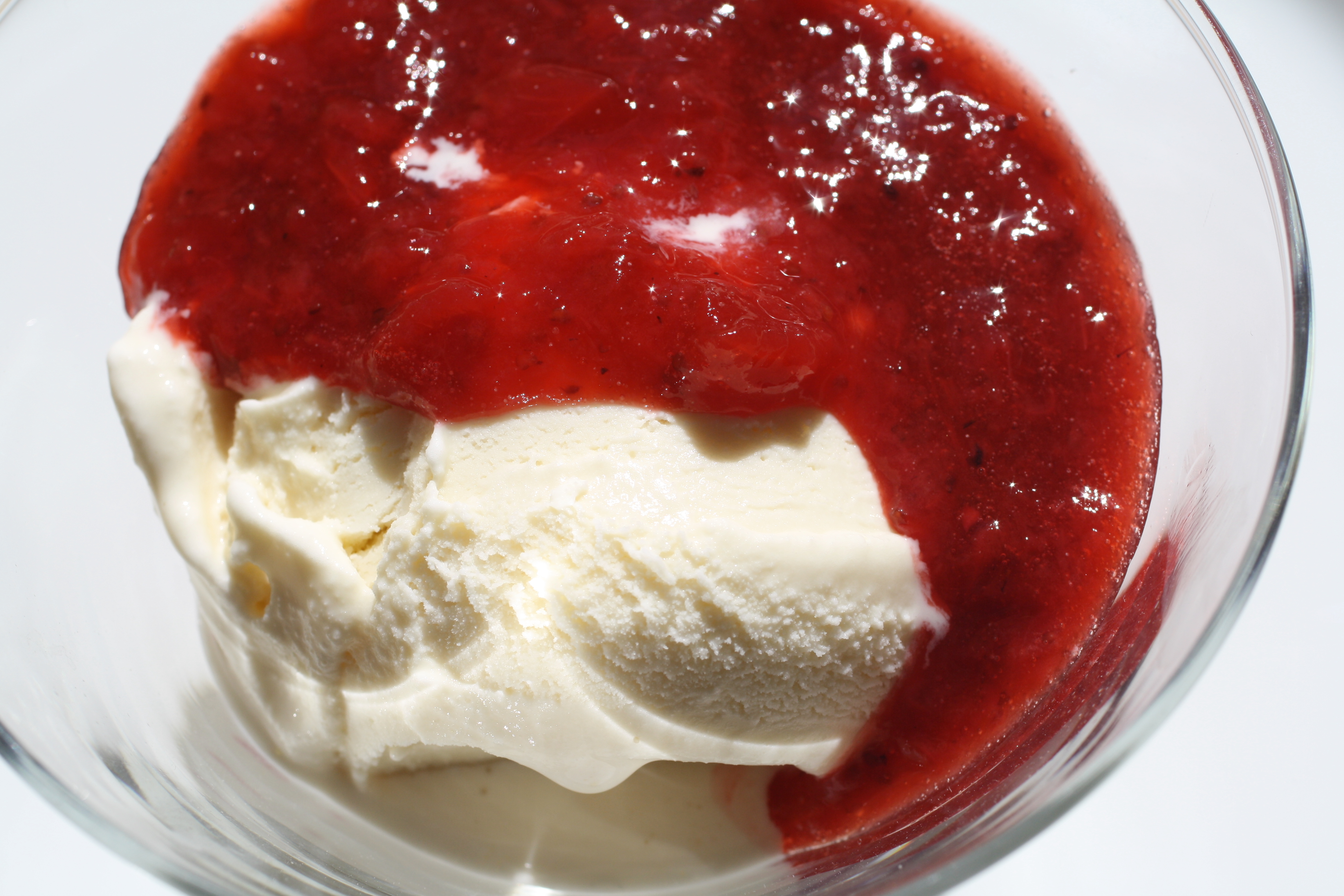 Sweet Cream Ice Cream with Strawberry Black Pepper Sauce