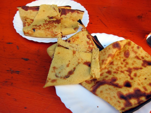 For my day in Nice, I did what any sensible girl would do: I hit the soldes (sales) at Petit Bateau and Princesse Tam-Tam. And when that was successfully completed, I found my way to Lou Pilha Leva, a street food vendor for all the foods I listed before. That’s the best part of Nice–all the best delicacies are so casual. You just sit at one of the broad benched tables, and share. I bought two soccas for the three of us, and we had them with frothy, cold Kronenbourg. They were salty, crisp, perfect–just enough to take the edge off. One the way to dinner, I stopped in at a little bakery and bought a lavender navette, a little crisp tea cookies shaped like a boat, with dried lavender blossoms baked in. And then, to dinner at La Tapenade, a little corner café where I had a fantastic ratatouille, and tagliatelle pistou (not an authentic version–but it wasn’t bad). After a bottle of rosé, we broken heartedly watched the other tables with their crème caramel and chocolate mousse, but we were steadfast. We got up, and marched to Fenocchio. There’s no tasting, so I had to choose very wisely. My mom and M. Français shared vanilla, coffee, and spekuloos. But for me, I restrict myself to the local corner. Orange flower ice cream and thyme sorbet. The thyme sorbet was genius–cold, fresh, different but somehow not unfamiliar. And the orange flower ice cream was just slightly fragrant, and much less sweet than the more “normal” flavors. I loved them. After that, I shared my lavender navette among the three of us as we hopped the automated trolley to our car. I was honestly devastated at the thought I might not have another socca for years.