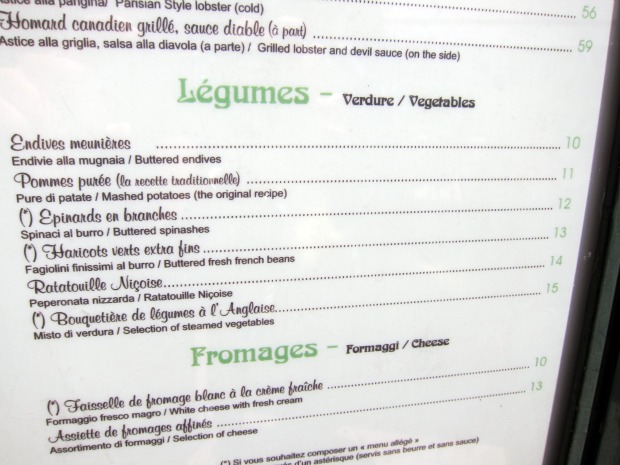 But I did pass by the Café de Paris, where my mom and I had lunch after I was barred from the casino thirteen years ago. It wasn’t a total loss, because I had the best ratatouille of my life, cut into a miniscule and perfectly cubed dice (a brunoise if you’ve been to cooking school). I never forgot it in thirteen years. But that’s when we were on the franc! Now, it’s 14 Euros! Maybe you get what you pay for.