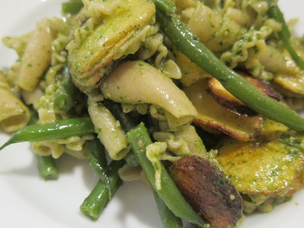 RECIPE: Whole Wheat Pasta with Spinach and Walnut Pesto, Haricots Verts, and Rosemary Roasted Potatoes